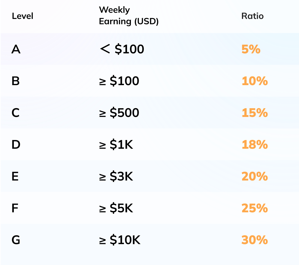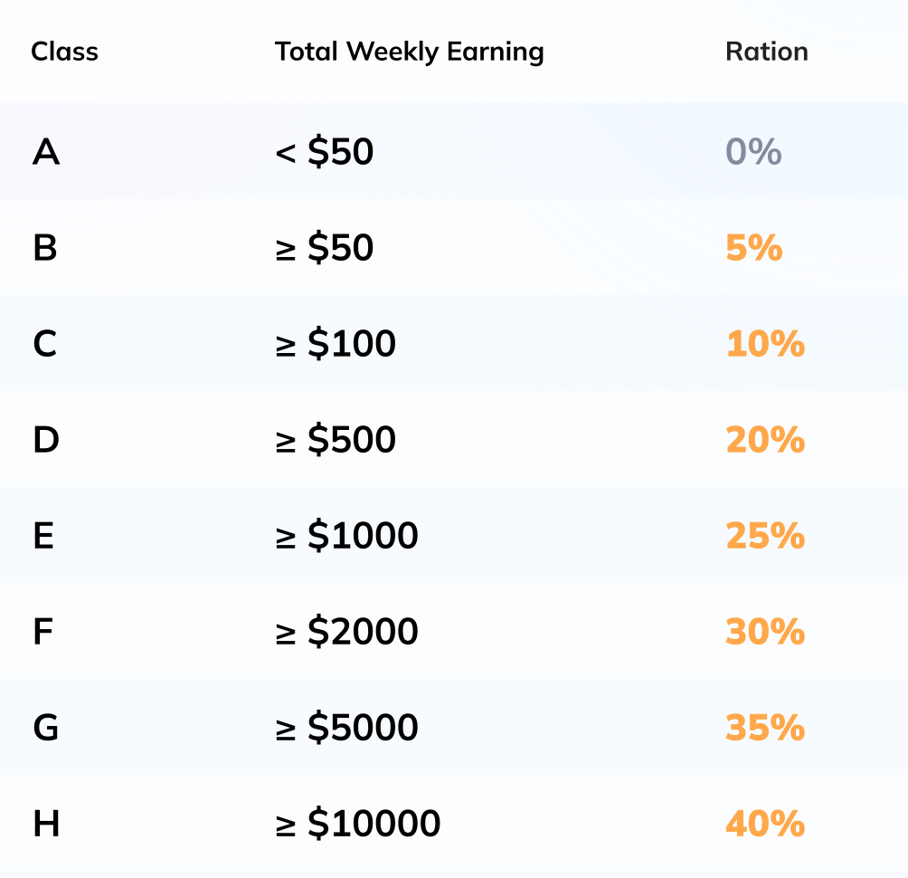 Your commission is floating according to the total weekly earnings of your sub-agency.